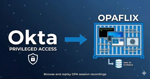 Opaflix is an open-source tool to browse and replay Okta Privileged Access (OPA) SSH and RDP session recordings from AWS S3. Supports single-tenant and multi-tenant deployments, advanced search, infrastructure graph, and OIDC Authentication.