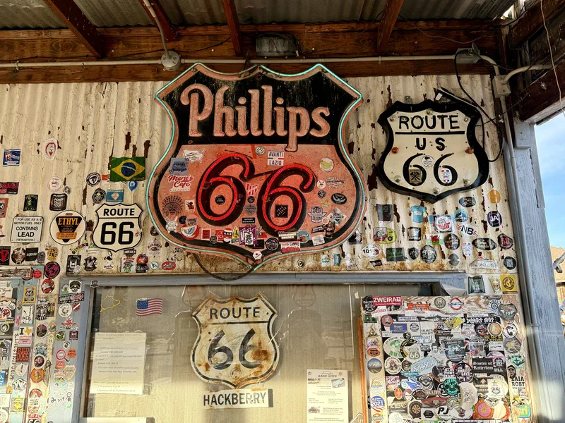 Poco prima di arrivare a Kingman, nel mezzo del nulla del deserto, incontrerete l’Hackberry General Store, un negozio generale trasformato in museo Route 66 con una collezione impressionante di automobili d’epoca - tappa fotografica imperdibile.