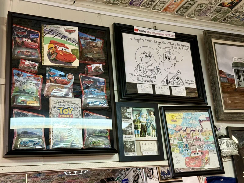 All’interno troverete anche poster autografati da John Lasseter, che intervistò Angel per catturare l’essenza della Route 66 nel film Cars. Qualcuno pensa che il personaggio di Ramone sia ispirato proprio a lui, con il suo salone colorato e la passione per le auto d’epoca.